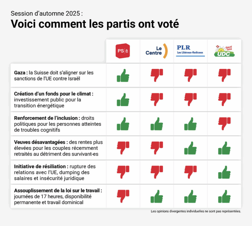 Session spéciale : les votes des partis représentés au Conseil fédéral