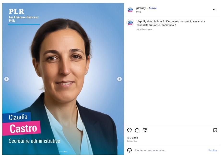 Ce n’est que deux mois plus tard que Claudia Castro découvre, par l’intermédiaire d’une amie, que son nom et sa photo figurent sur un prospectus électoral du PLR Prilly. La surprise se transforme rapidement en colère, d’autant plus qu’elle est élue lors du scrutin communal du 8 mars avec près de 700 voix. Elle affirme ne rien connaître à la politique, ne pas vouloir s’engager et n’avoir jamais donné son accord pour une candidature. Depuis cette élection involontaire, elle explique avoir reçu de nombreux appels, courriels et invitations dans le cadre de la campagne, alors même qu’elle n’y a jamais participé. Pour elle, la méthode employée est « vraiment malhonnête ».